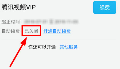 6、操作完毕后,就可以看到腾讯视频VIP自动续费后面是“已关闭”状态。
