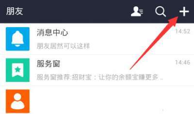 单击朋友选项之后会进入到如图所示,此时我们单击面板右上角的“+”按钮。