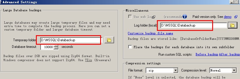 我把备份数据库日志和大型数据库临时文件的路径都设置在D:\MSSQL\Databackup
