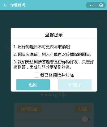 3、点击知道啦,然后开始出题,可以用系统自带的题目,也可以直接自己出题;