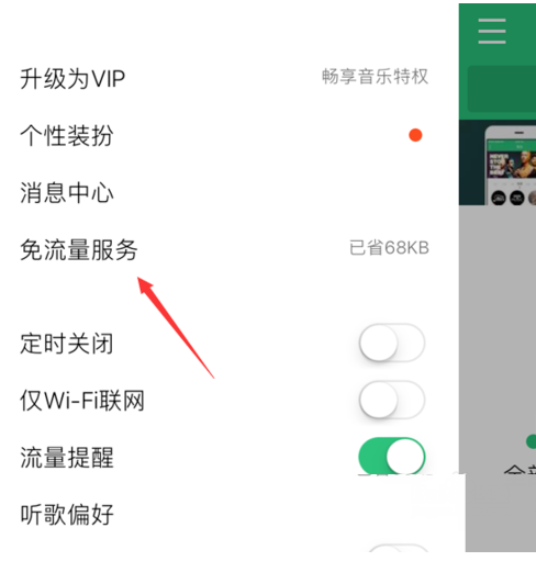 3.在新展开的页面中,我们可以看到有个免流量服务