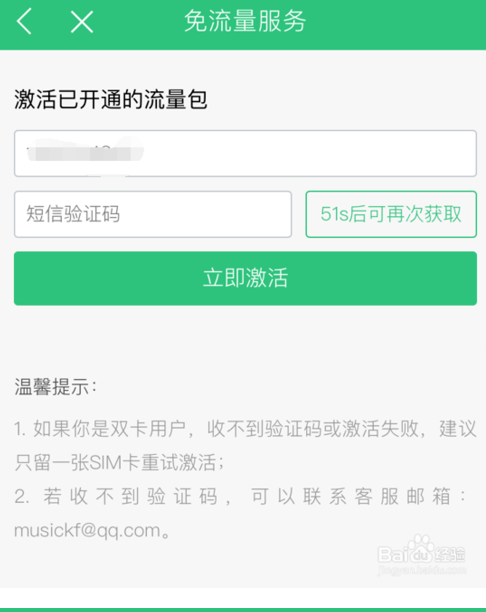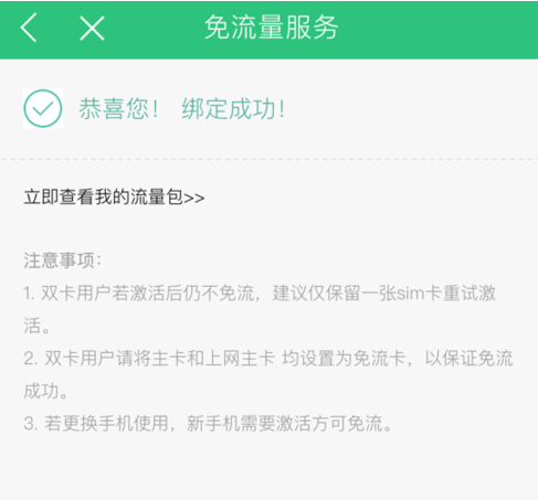 5.然后就可以看到自己的号码已经开通了免流服务了
