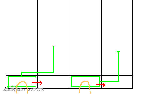 在拐弯处提前滑动时,原来轨道上剩下的音符会漏掉。但是因为慢歌里音符分布密度小,快歌里音符分布密度大,所以快歌比慢歌更容易漏键。可以参照下面这幅图来滑。其中左边是慢歌,右边是快歌。