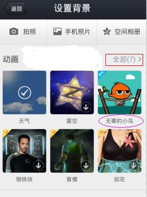 活动提到过免费皮肤,那如何领取呢?很简单,登陆手机空间4.0应用,在“动态”里点击上面的背景图片 → 设置背景 → 选择“无辜的小鸟”(限免)使用即可。如果设置后这个皮肤默认不是动态的,请手动进入“全部”,将“开启动画”的选项打开即可。要是还不行的话,那就退出应用重新打开就好了!