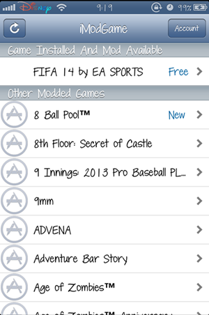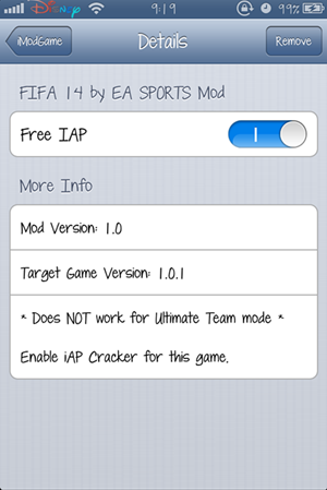 5、先点击Link This Device,对你这部越狱设备进行绑定,然后打开imodgame点击FIFA14,打开Free Iap(现在可以零积分购买)