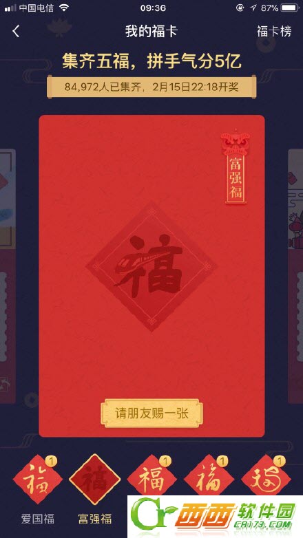 今年五福延续爱国、友善、和谐、富强、敬业五种福卡,去年几乎被玩坏的“AR扫福字”,还是得福卡的主要方式。