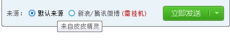1、默认来源:微博保存在服务器上,无需挂机,定时完后可关闭,显示来自皮皮精灵(皮皮时光机或网页版上自定义的来源)
