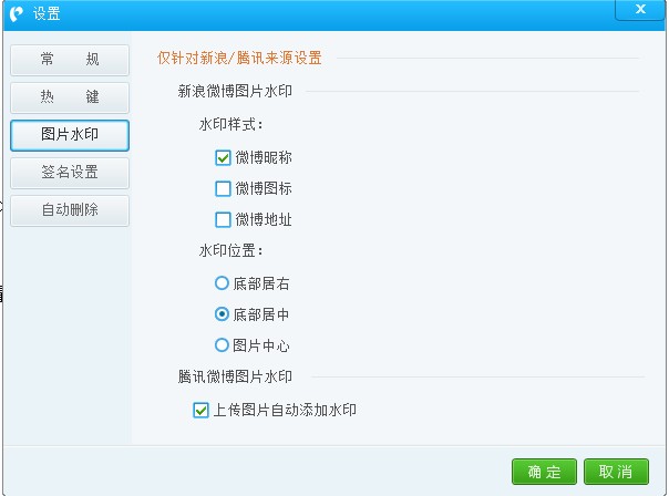 水印设置仅针对新浪/腾讯来源,默认来源的水印设置与网页版同步,无需再次设置