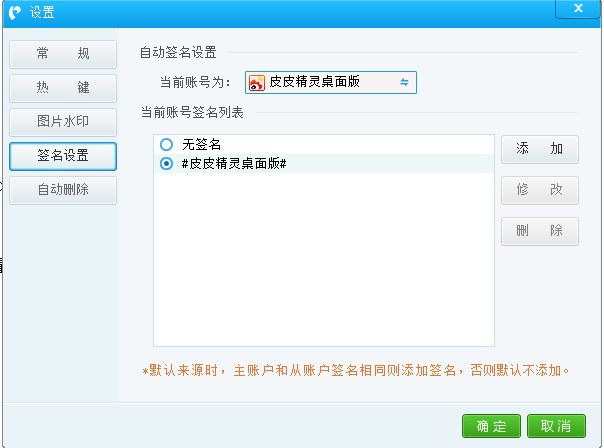默认来源时,主帐号与关联帐号需设置一样的签名,否则默认不添加