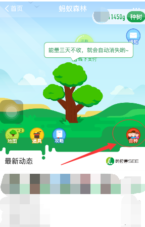 2.在蚂蚁森林主界面点击合种按钮。
