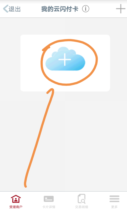 6.进入我的云闪付后点按箭头指向的加号标志。