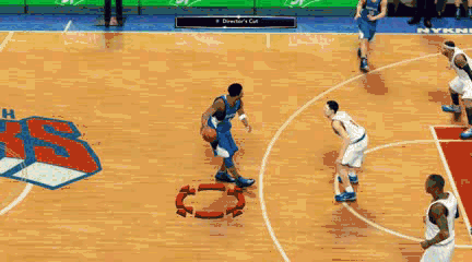 3、在撞上防守球员之前,把摇杆向后推,让控制的球员一个急刹车然后向后走一两步。(注意千万不能和防守球员有身体接触,否则恶心的防守粘人就会出现)