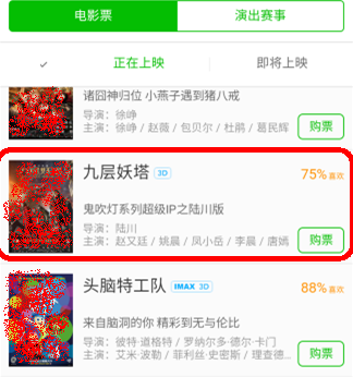 置顶位置的电影剧院,一般是我们当前所处城市的电影院,看清楚位置再点击进去买票。