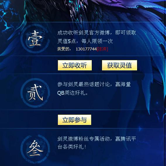 加入剑灵微博专区=5点灵值(这个有很多童鞋已经很早很早就领取了)
