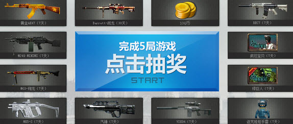 新用户每天完成5局游戏可于次日10:00在本页面领取抽奖机会参与抽奖,CFVIP、QQ用户可额外获得1次抽奖机会!