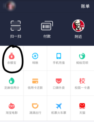 2、点击余额宝,进入余额宝分页,找到右上角的设置,点击进入余额宝设置。