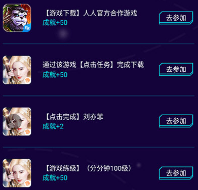 2、通过下载游戏,并且完成游戏中的任务,或者达到一定等级来获取成就值。