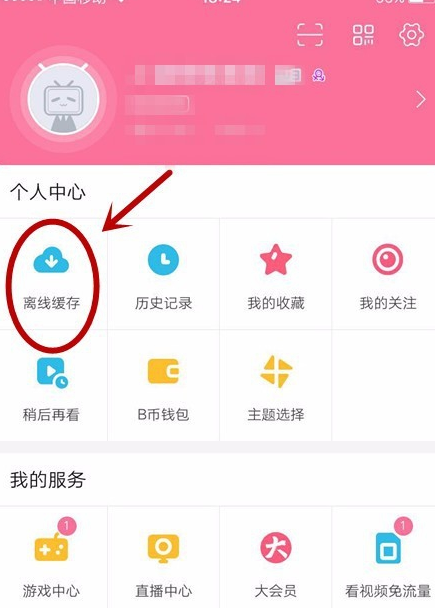3.在“个人中心”中选取“离线缓存”