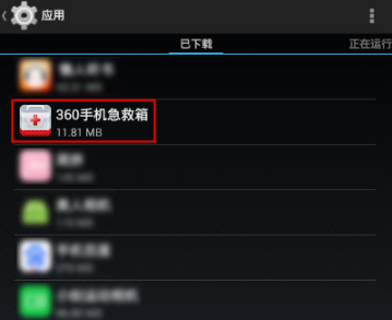 在手机的“应用”界面中,找到“360手机急救箱”,在“应用信息”界面中,点击“卸载”即可。