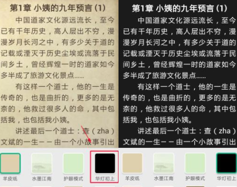 3.夜间模式的阅读背景是“华灯初上”,所以我们选择“华灯初上”。这样QQ阅读夜间模式也就启动了。(如下图所示)