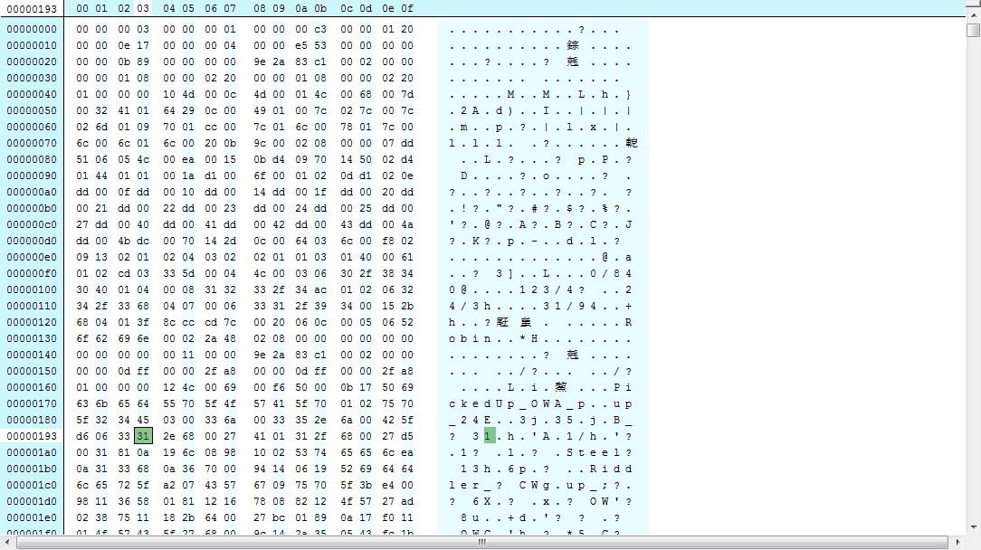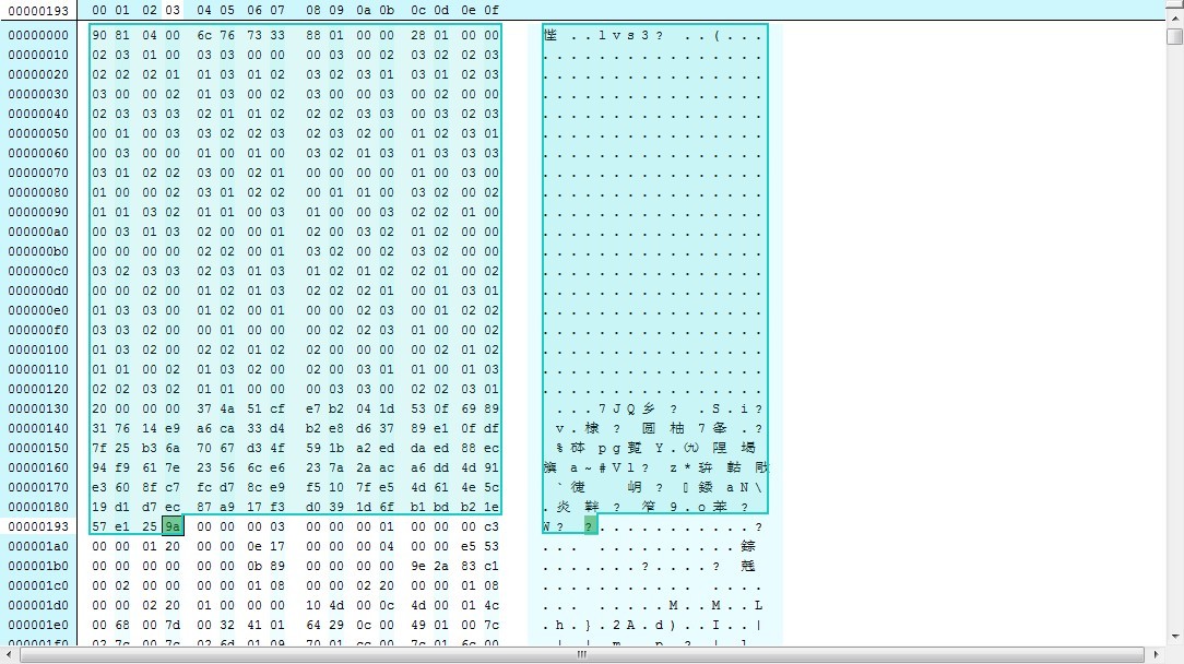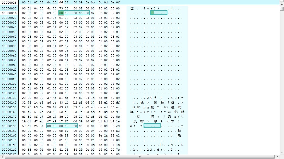 删掉后就是这样了~00 00 00 30 00这段成为第一行