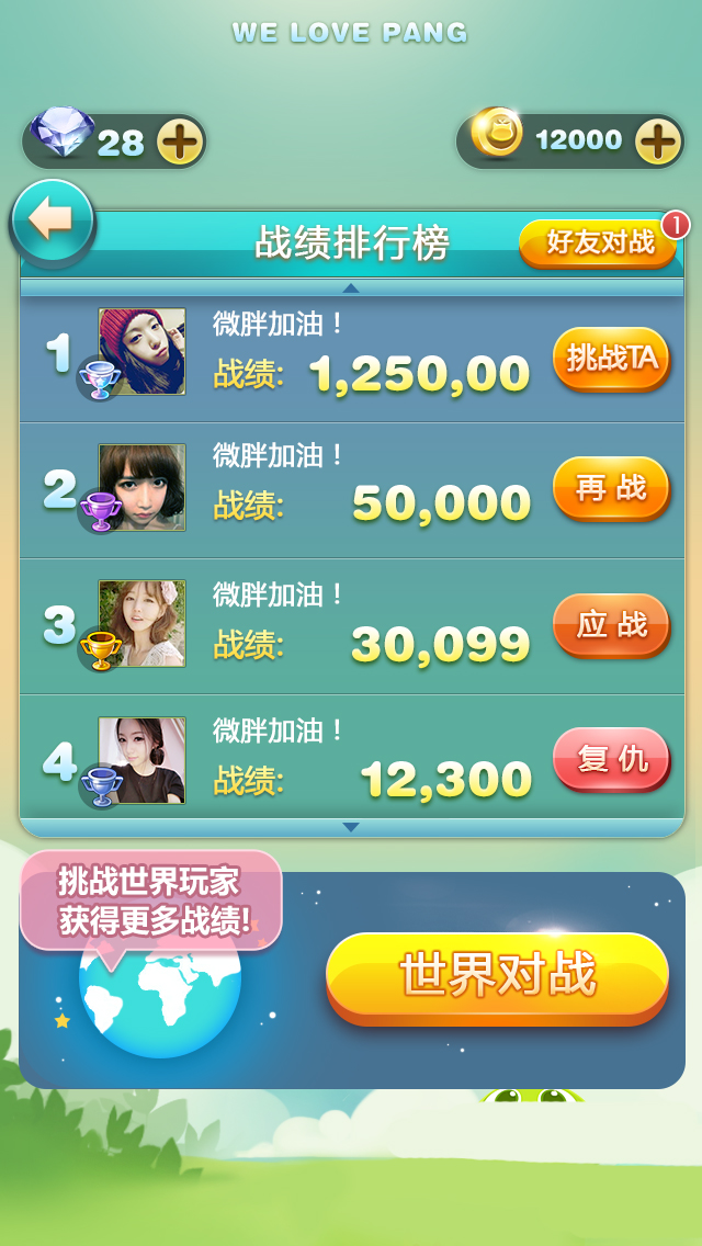 玩厌了每周只能与好友争抢排名了么?爱消除即将上线的PK对战版本,不仅能让玩家向好友一对一发起挑战,更能在世界对战模式里,和全球的玩家一起PK,游戏过程中还有意外的奖励掉落。新鲜的游戏模式,超越了传统消除游戏的基本玩法,让PK对战全面升级,更多乐趣和惊喜尽在新版本。