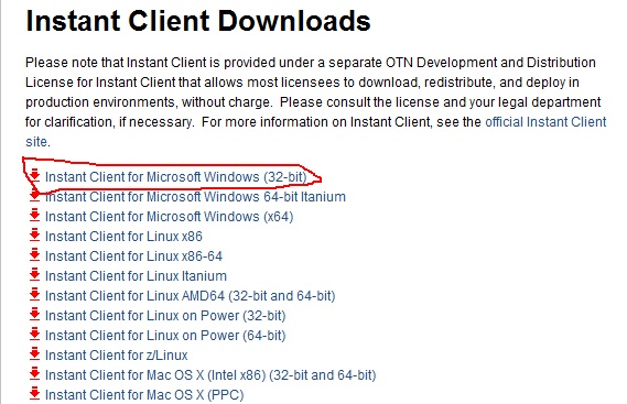 1、下载oracle客户端(http://www.oracle.com/technetwork/database/features/instant-client/index-097480.html)