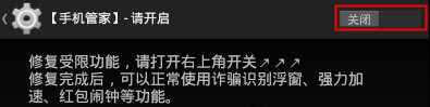 2、在“【手机管家】-请开启”界面中,点击界面右上角的“关闭”按钮;