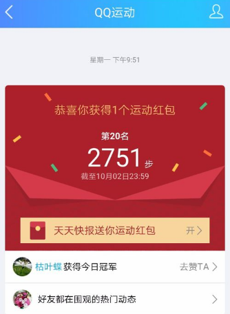 现在就来到了QQ运动页面,直接点击步数排名进入页面;
