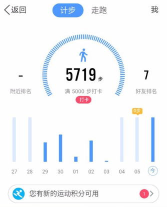 现在就弹出了确认对话框,可以看到页面提示“已打卡”还一项需要注意只有每天步数达到了5000步了,才可以进行打卡。