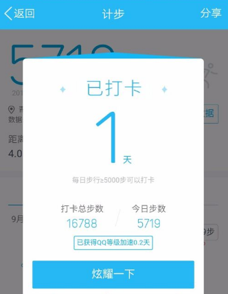 运动也可以为QQ加速哦,通过苹果、安卓或智能手环等设备获取的步数信息同步至QQ运动,当你的步数≥5000步然后点击页面【打卡】按钮即可加速成功。
