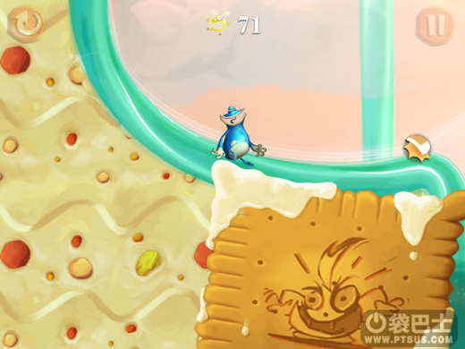 与《丛林探险》的四大章节结构不同,《嘉年华》将游戏设定在甜蜜诱人的“美食世界”,采用了线性的关卡模式,通过收集(解救)的Lums数量来解锁新的关卡(美食屋),每个美食屋下面又有若干个小关卡。玩家的进度如何完全根据你收集到的小光点来决定,自由又毫无压迫感。各种美味清新的场景下,雷曼时而在芝士蛋糕上滑动,时而在巧克力饼上跳跃,非常欢乐,此外还有游泳、缩小、场景转换等新的元素,所以玩起来毫无雷同感。