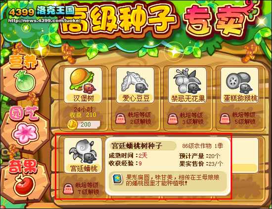 洛克王国宫廷蟠桃是农场种植的奇果,小洛克们农场等级达到86级后,奇果栽培大师熟练度达到7级的时候,可以种植的农作物哦!