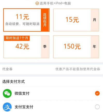 登陆过之后返回我的页面,点击开通会员。分为两种会员PC移动端会员和全屏影视会员,根据个人需求选择;