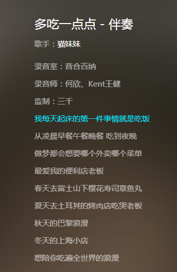 来自猫妹妹演唱的歌曲《多吃一点点》 猫妹妹