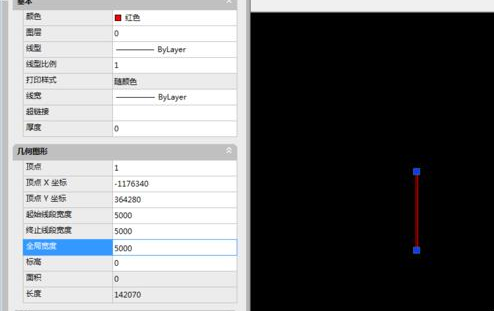 2、7选中线段,右键,特性,在对话框中,填入全局宽度,如我填入5000,则线段就变宽了。