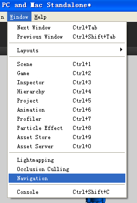 先来看看怎么在unity打开NavMesh功能的窗口吧:
