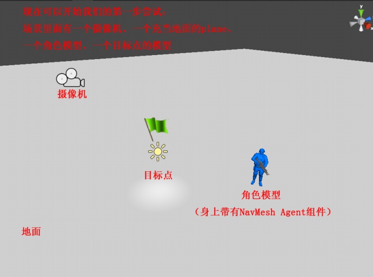 通过刚才的几步,NavMesh常用的几个面板我们都已经操作过了,接下来可以做一个小例子: