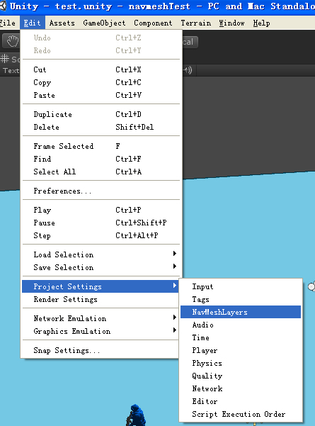 在Edit下拉列表,选择Project——NavMeshLayers