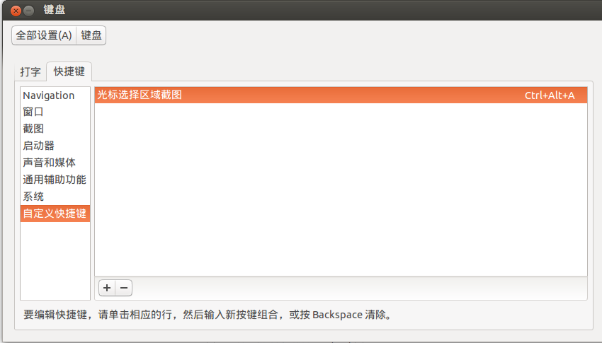 进入系统设置 -- 键盘 -- 快捷键 -- 截图 -- 自定义或修改