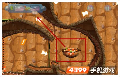 4、顺着箭头指示,开着木车冲向圆盘。借助冲力冲到对岸,过关。