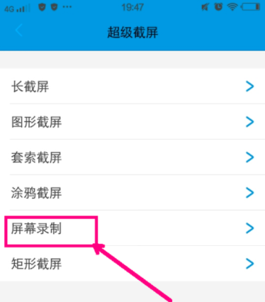 5.然后选择超级截屏,会出现屏幕录制,长截屏,矩形截屏,长截屏以及趣味截屏四个选项,要录制屏幕则选择屏幕录制。