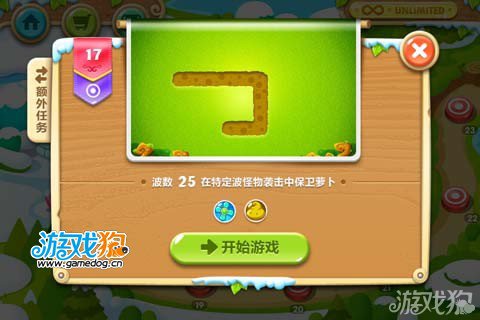 保卫萝卜2第17关金萝卜和水晶萝卜到手。