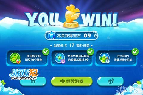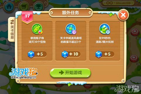 本关的额外任务最难的就是99秒消灭2颗大松树!其实只要选对了目标还是很轻松的。