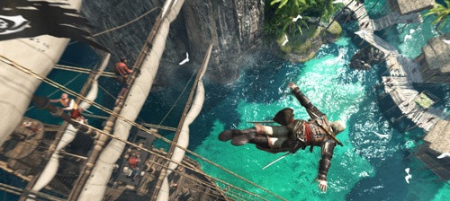 在这里,爱德华是没有武器的,需要抢夺武器,然后来到了哈瓦那城镇,进行暗杀契约任务,不被发现的作战能得到更多奖励,自由瞄准的加入让射击更有FPS味道,商店里有很多用来自定义舰船的商品,来到杜卡斯的地方,这艘船是Man of War种类,能携带100多门大炮,途中丛林里包含新加入的躲藏小屋,可利用其杀掉附近的敌人,吹管会让敌人攻击任何人,随后登船杀掉圣殿。