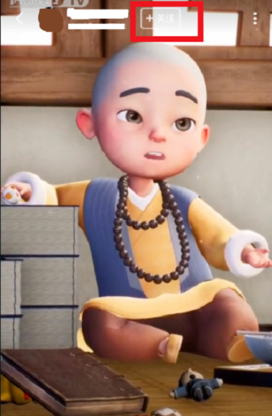 5.在视频画面最上方的位置,有个“+关注”的方框,点击这里,然后就成功的关注啦。