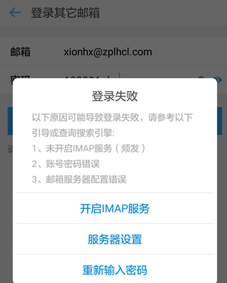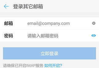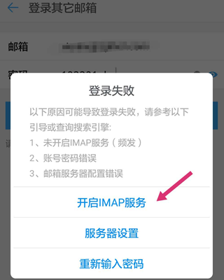 5、添加账号之后需要确认自己的其他邮箱开启的IMAP服务。安装提示去开启服务即可。