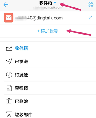 1、点击进入钉钉,在钉钉邮箱里面找到【收件箱】,在【收件箱】这里可以选择添加账号。