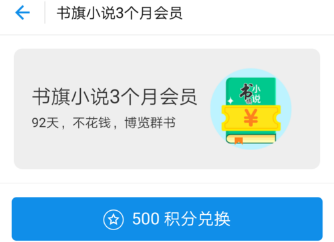 打开主页中间你的蚂蚁花呗,你的蚂蚁花呗积分足够500的话,下来找积分兑换那里,看到书旗小说会员兑换后点击去兑换。