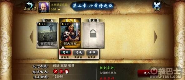 我们可以看到该关卡敌方士兵类型有:刀盾、弓箭、骑兵。同时系统会给您一个推荐战力,该战力是系统计算出能通过此关卡的队伍战斗力。玩家在进行战斗前,可以通过推荐战力来判断这个关卡内的地方部队实力,为了稳妥过关,我们推荐使用一些具有克制效果的部队来进行战斗,如:长戟。骑兵速度快,往往NPC在战斗中会同时将据点内的部队派出,因此骑兵会最先到达,所以在有骑兵的战斗中,推荐使用长戟兵来进行克制和防守。